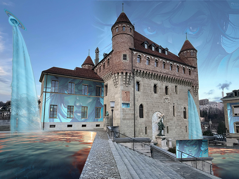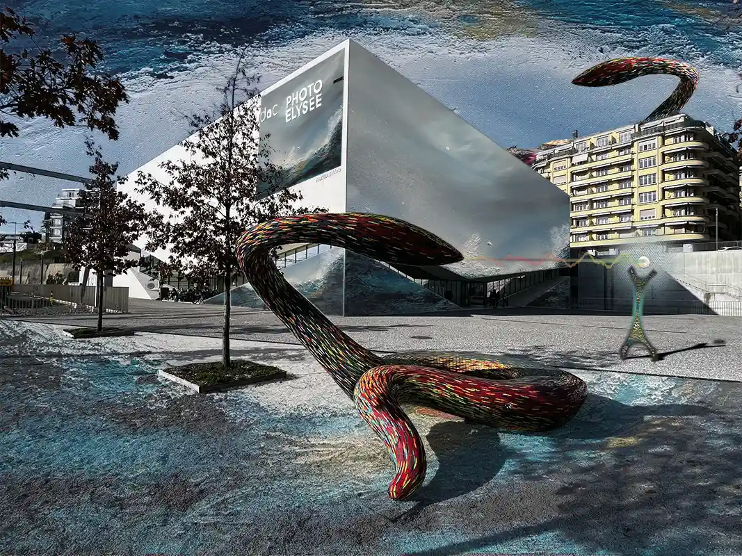Photo du MUDAC @José Gaggio avec l’intégration de l’oeuvre de Maria Lopo.